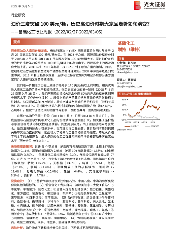 【光大证券】【20220305】20220305-光大证券-基础化工行业周报:油价三度突破100美元 桶,历史高油价时期大宗品走势如何演变?-25页