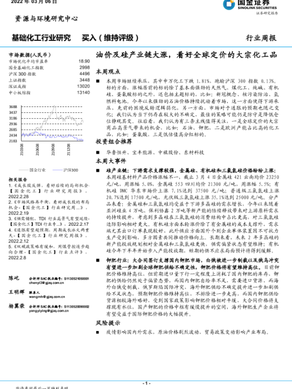 【国金证券】【20220306】基础化工行业周报:油价及硅产业链大涨,看好全球定价的大宗化工品-28页