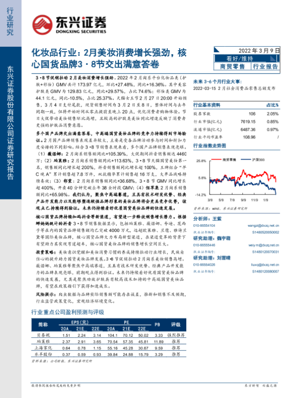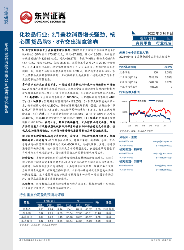 【东兴证券】【20220309】化妆品行业:2月美妆消费增长强劲,核心国货品牌3·8节交出满意答卷-5页