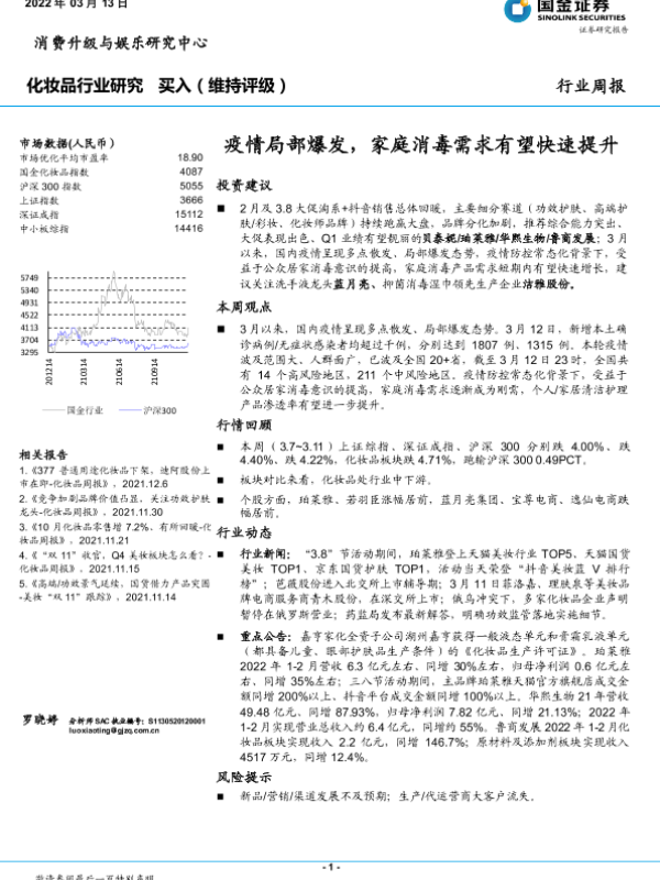 【国金证券】【20220313】20220313-国金证券-化妆品行业研究:疫情局部爆发,家庭消毒需求有望快速提升-9页