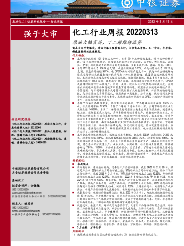 【中银证券】【20220313】20220313-中银证券-化工行业周报:原油大幅震荡,丁二烯维持涨势-16页