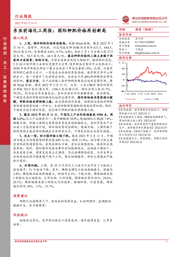 【东亚前海证券】【20220314】东亚前海化工周报:国际钾肥价格再创新高-22页