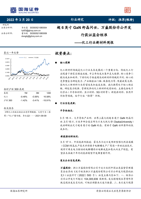 【国海证券】【20220320】20220320-国海证券-化工行业新材料周报:超6英寸GaN籽晶问世,万盛股份非公开发-38页