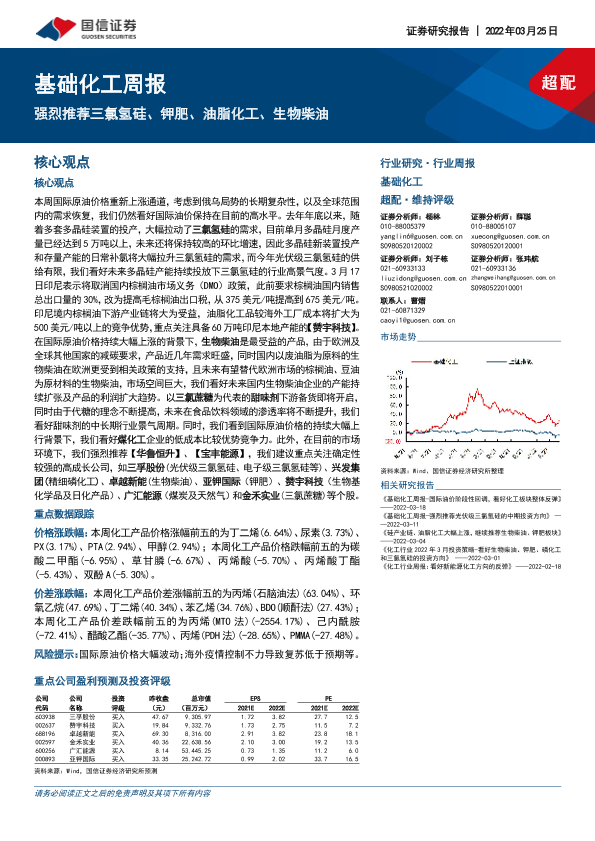 【国信证券】【20220325】20220325-国信证券-基础化工周报:强烈推荐三氯氢硅、钾肥、油脂化工、生物柴油-19页