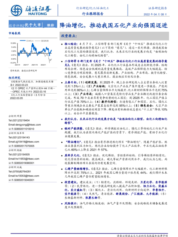 【海通证券】【20220408】石油化工行业跟踪报告:降油增化,推动我国石化产业向强国迈进-2页