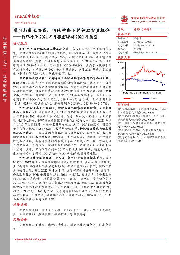 【东亚前海证券】【20220409】钾肥行业2021年年报前瞻与2022年展望:周期与成长共舞、供给冲击下的钾肥投资机会-22页