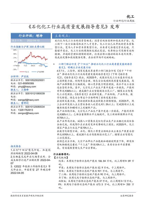 【华安证券】【20220410】20220410-华安证券-化工行业周报:《石化化工行业高质量发展指导意见》发布-32页