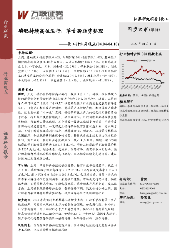 【万联证券】【20220411】20220411-万联证券-化工行业周观点:磷肥持续高位运行,草甘膦弱势整理-11页