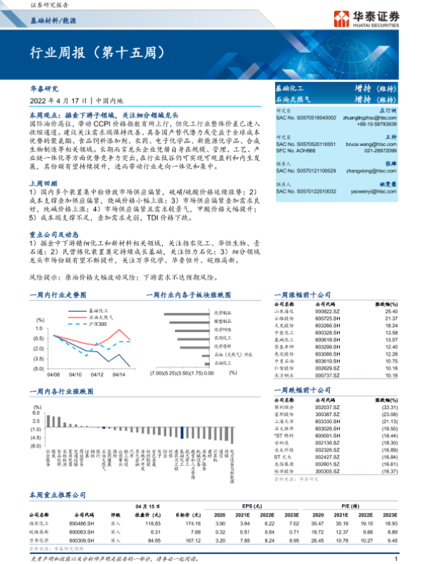【华泰证券】【20220417】20220417-华泰证券-基础材料 能源行业周报(第十五周)-19页