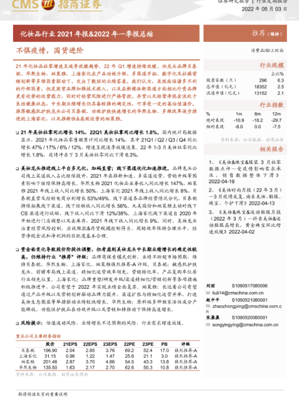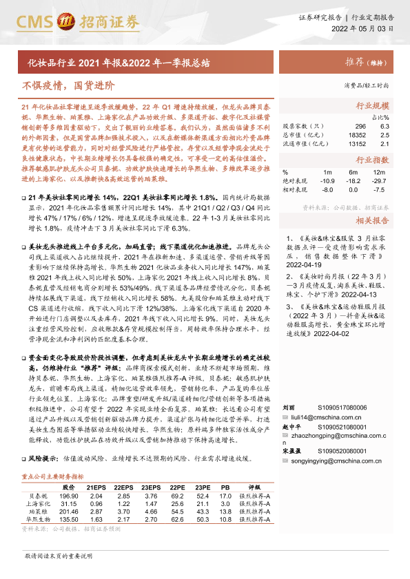 【海通证券】【20220503】化妆品行业2021年报&2022年一季报总结-14页