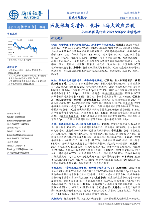 【海通证券】【20220502】化妆品医美行业2021&1Q22业绩总结:医美保持高增长,化妆品马太效应显现-25页