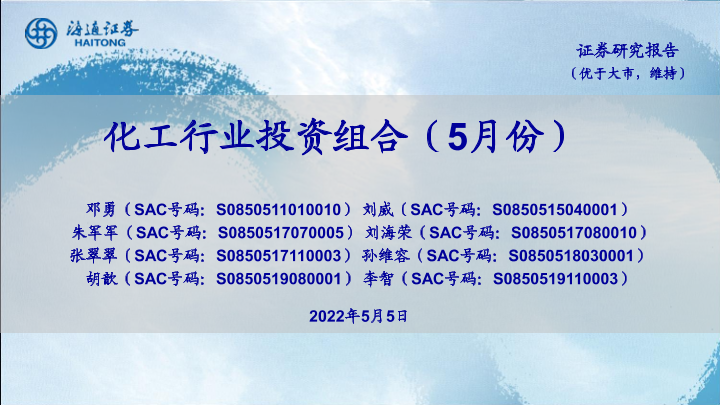 【海通证券】【20220505】化工行业投资组合(5月份)-20页