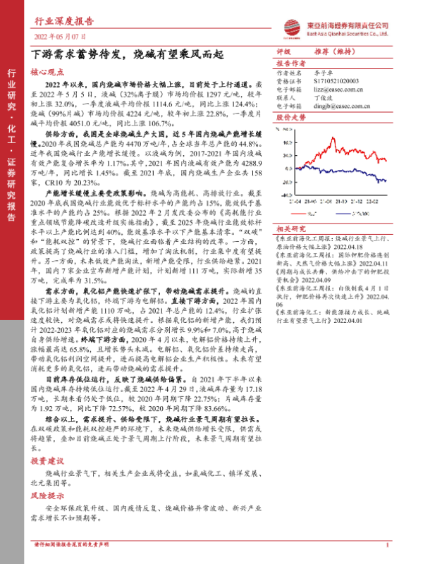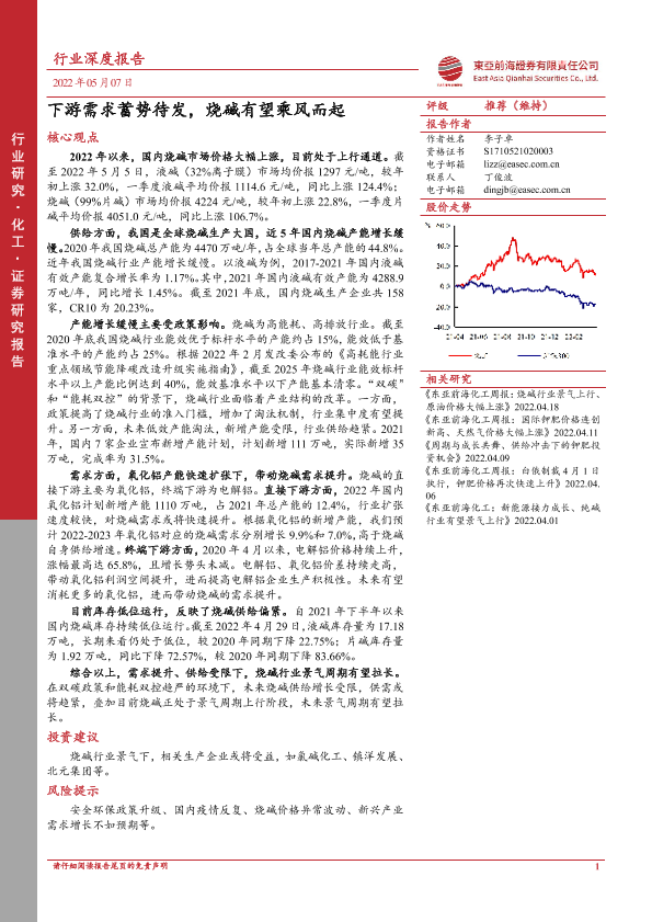 【东亚前海证券】【20220507】20220507-东亚前海证券-化工行业深度报告:下游需求蓄势待发,烧碱有望乘风而起-48页