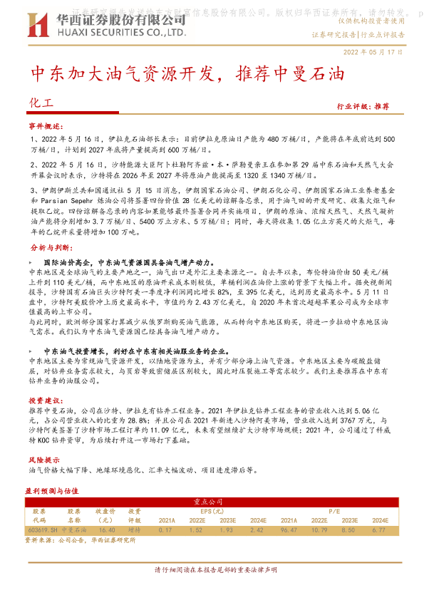 【华西证券】【20220517】中东加大油气资源开发,推荐中曼石油-4页