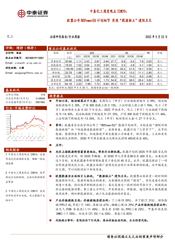 【中泰证券】【20220522】中泰化工周度观点22W20:欧盟公布REPowerEU计划细节 实现“能源独立”道阻且长-23页
