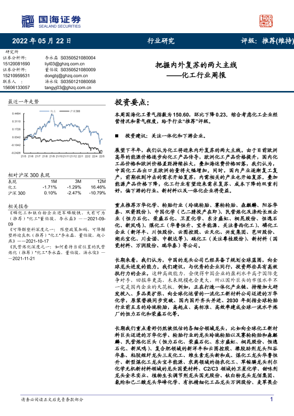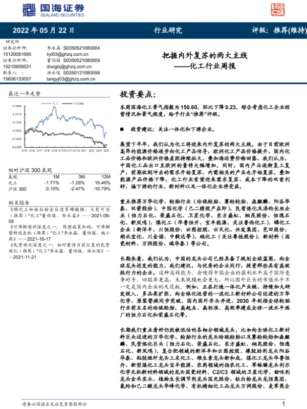 【国海证券】【20220522】20220522-国海证券-化工行业周报:把握内外复苏的两大主线-52页
