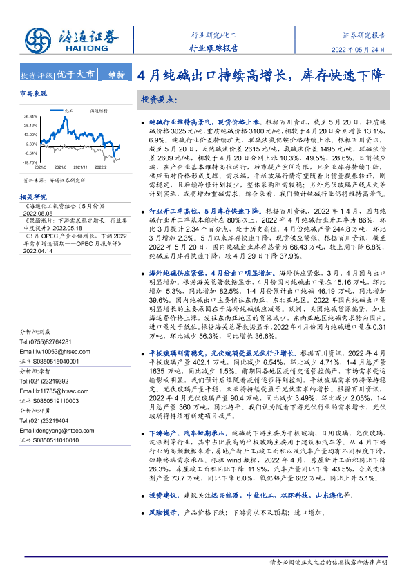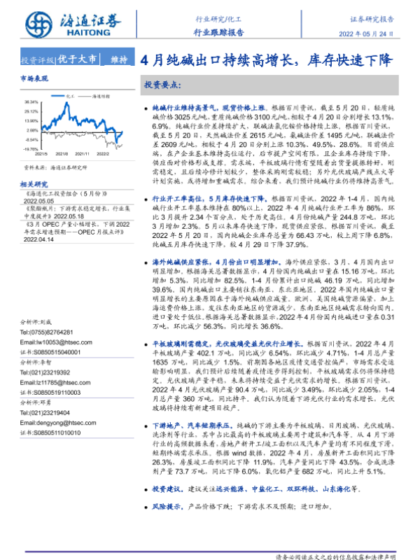 【海通证券】【20220524】20220524-海通证券-化工行业跟踪报告:4月纯碱出口持续高增长,库存快速下降-6页