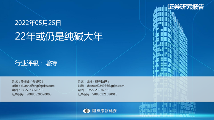 【国泰君安证券】【20220525】22年或仍是纯碱大年-32页