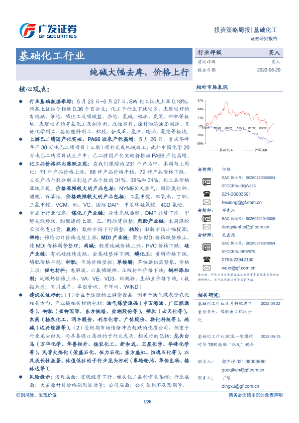 【广发证券】【20220529】20220529-广发证券-基础化工行业投资策略周报:纯碱大幅去库,价格上行-26页
