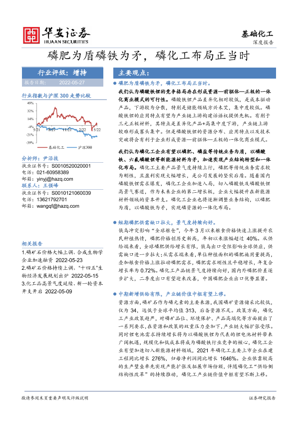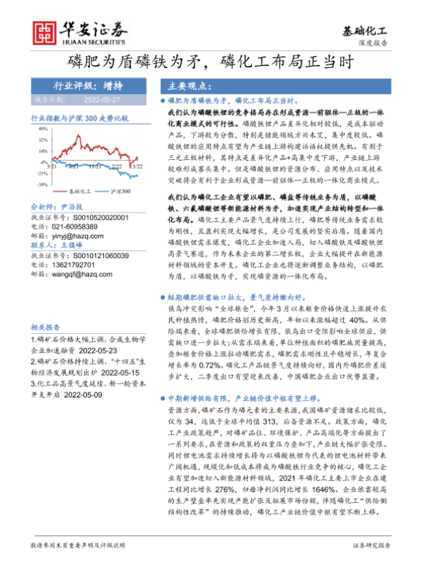 【华安证券】【20220527】基础化工深度报告:磷肥为盾磷铁为矛,磷化工布局正当时-38页