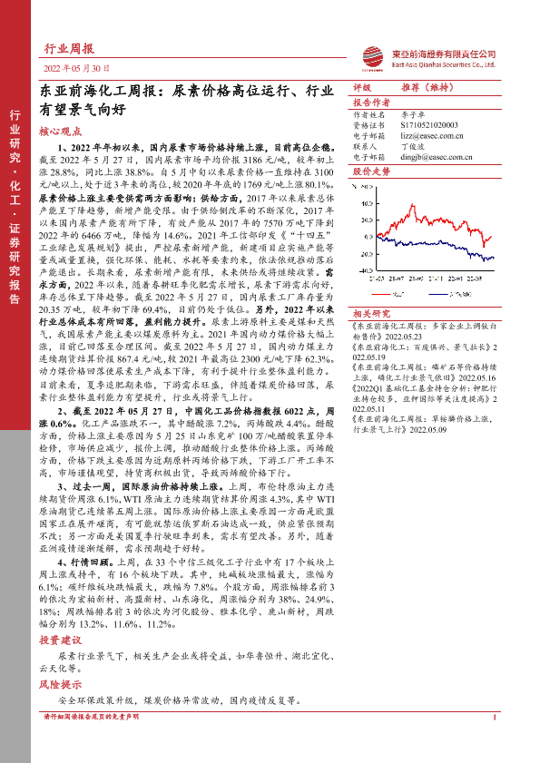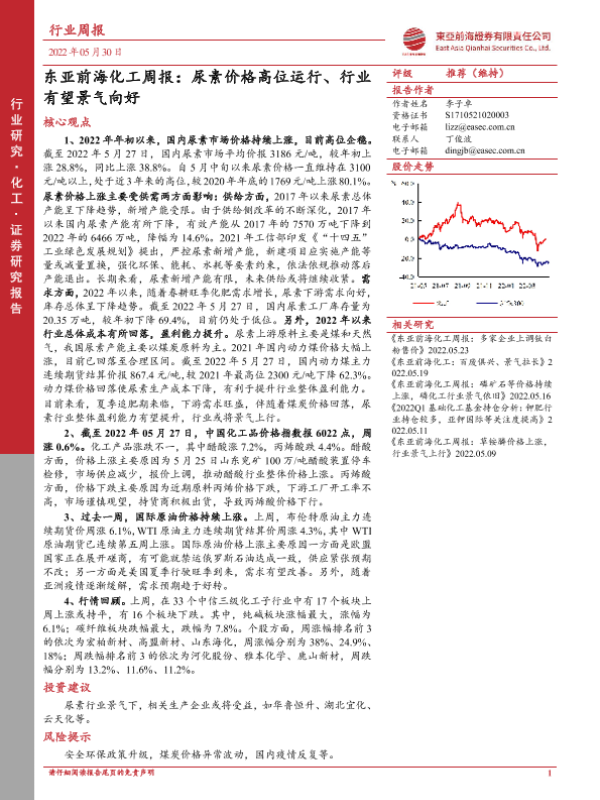 【东亚前海证券】【20220530】东亚前海化工周报:尿素价格高位运行、行业有望景气向好-22页