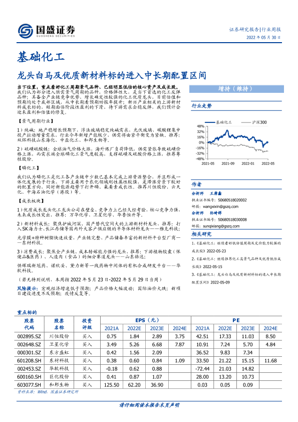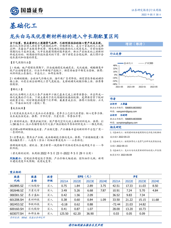 【国盛证券】【20220530】基础化工行业周报:龙头白马及优质新材料标的进入中长期配置区间-14页
