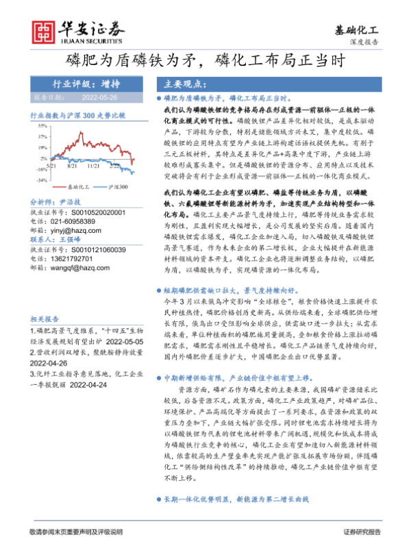 【华安证券】【20220526】基础化工深度报告:磷肥为盾磷铁为矛,磷化工布局正当时-38页