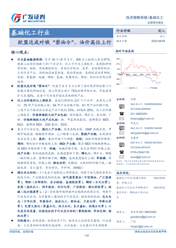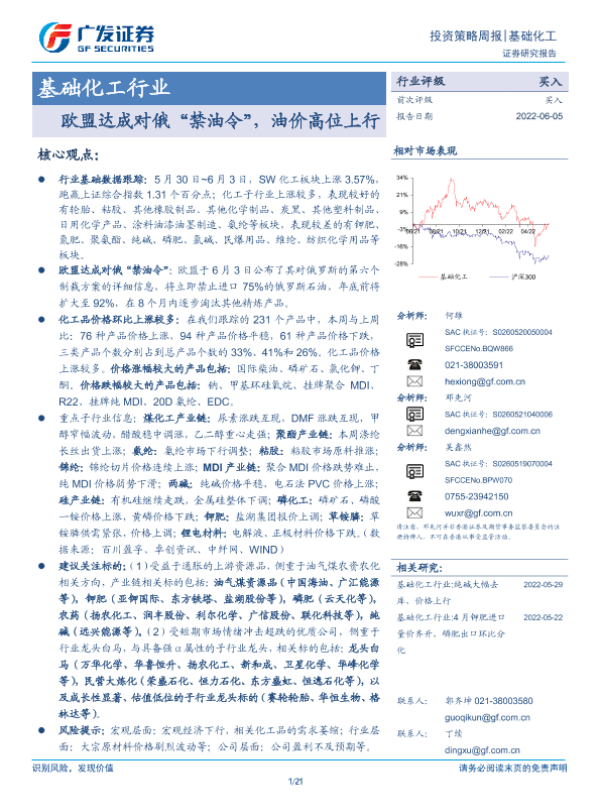 【广发证券】【20220605】基础化工行业投资策略周报:欧盟达成对俄“禁油令”,油价高位上行-21页