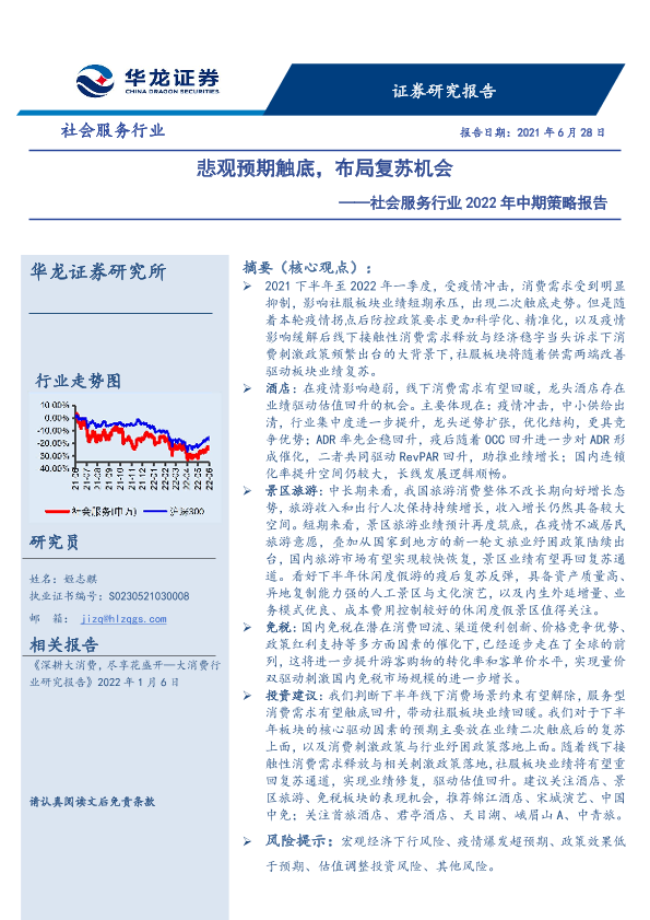 【华龙证券】【20220628】社会服务行业2022年中期策略报告:悲观预期触底,布局复苏机会-28页