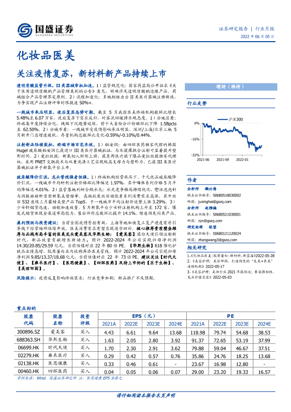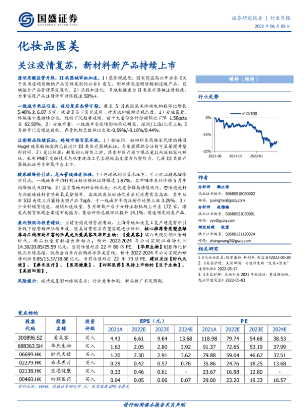 【国盛证券】【20220605】20220605-国盛证券-化妆品医美行业月报:关注疫情复苏,新材料新产品持续上市-11页