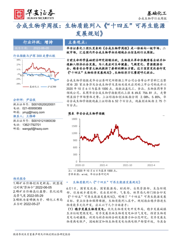 【华安证券】【20220605】20220605-华安证券-合成生物学周报:生物质能列入《“十四五”可再生能源发展规划》-18页