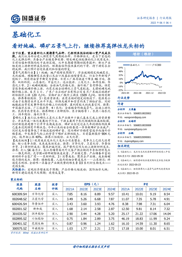 【国盛证券】【20220606】20220606-国盛证券-基础化工行业周报:看好纯碱、磷矿石景气上行,继续推荐高弹性龙头标的-11页