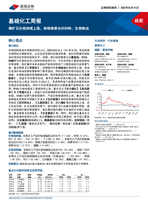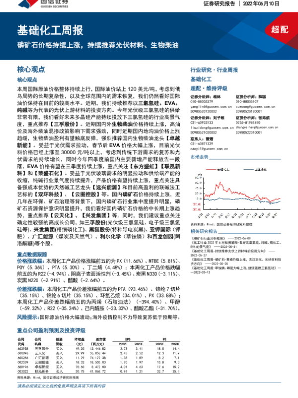 【国信证券】【20220610】20220610-国信证券-基础化工周报:磷矿石价格持续上涨,持续推荐光伏材料、生物柴油-20页