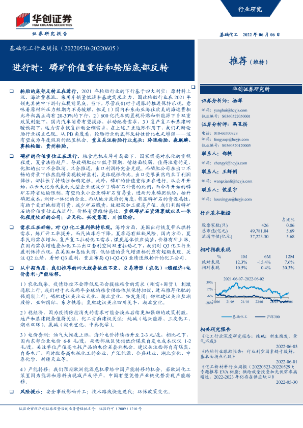 【华创证券】【20220606】20220606-华创证券-基础化工行业周报:进行时:磷矿价值重估和轮胎底部反转-58页