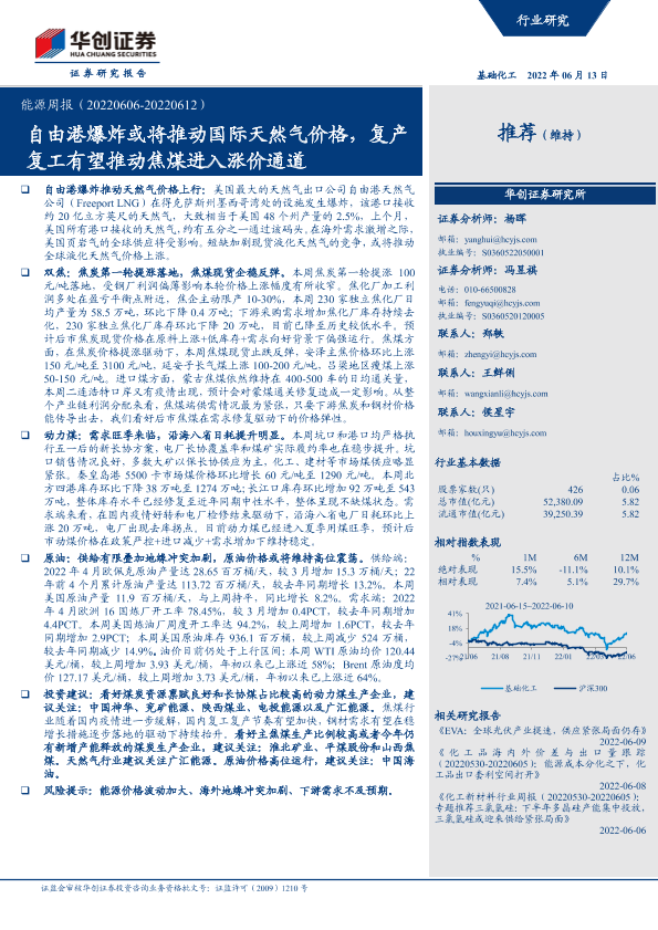 【华创证券】【20220613】20220612-华创证券-基础化工能源周报:自由港爆炸或将推动国际天然气价格,复产复工有望推动焦煤进入涨价通道-18页
