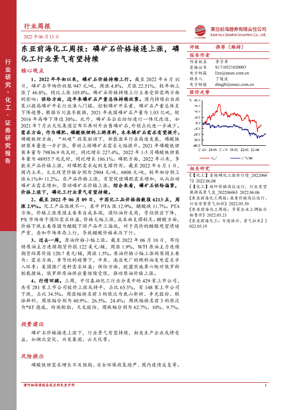 【东亚前海证券】【20220613】东亚前海化工周报:磷矿石价格接连上涨,磷化工行业景气有望持续-22页