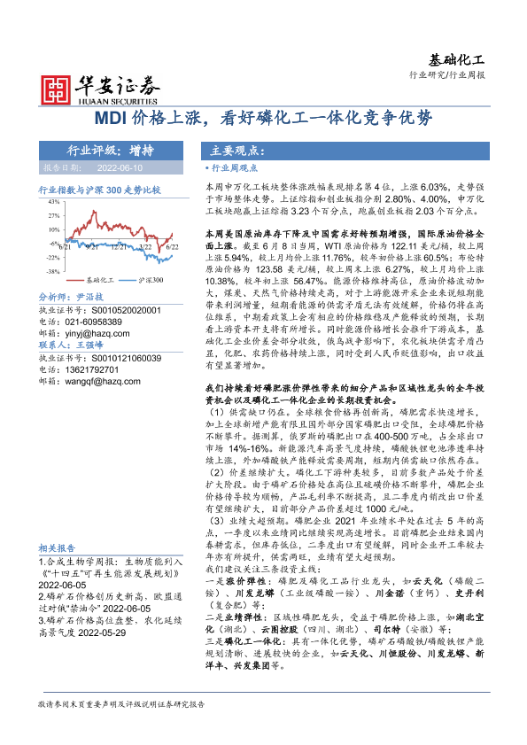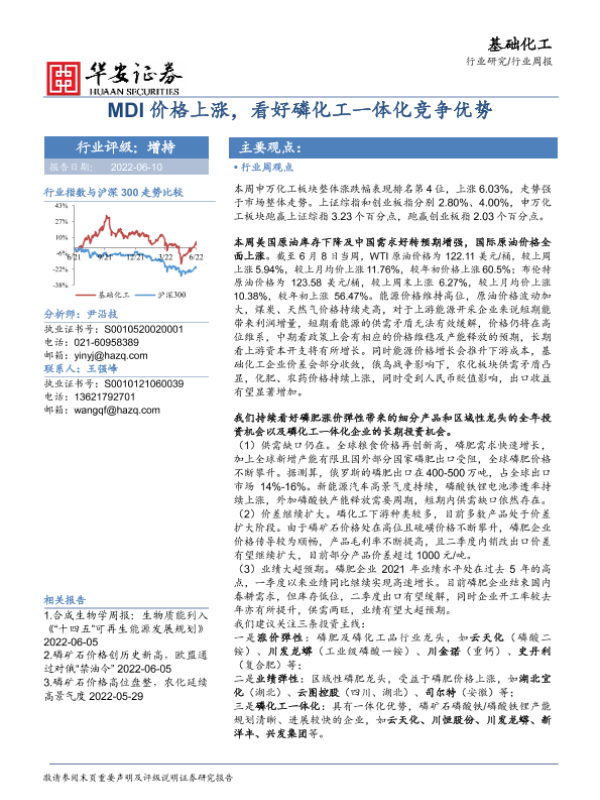 【华安证券】【20220610】20220610-华安证券-基础化工行业周报:MDI价格上涨,看好磷化工一体化竞争优势-39页