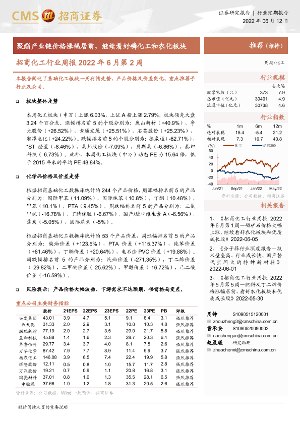 农化板块 化工行业 周报 磷化工 聚酯产业链