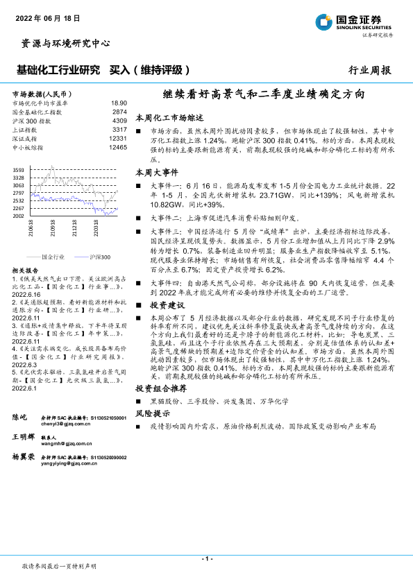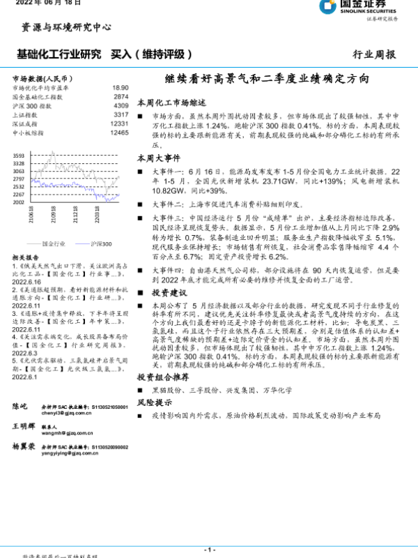 【国金证券】【20220618】基础化工行业研究:继续看好高景气和二季度业绩确定方向-25页