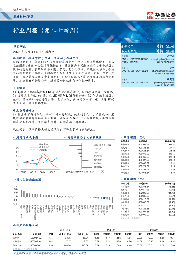 【华泰证券】【20220619】20220619-华泰证券-基础材料 能源行业周报(第二十四周)-17页
