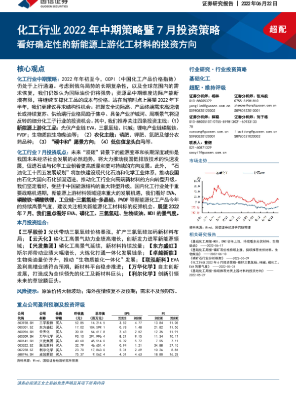 【国信证券】【20220622】2022年中期策略暨7月投资策略:看好确定性的新能源上游化工材料的投资方向-37页