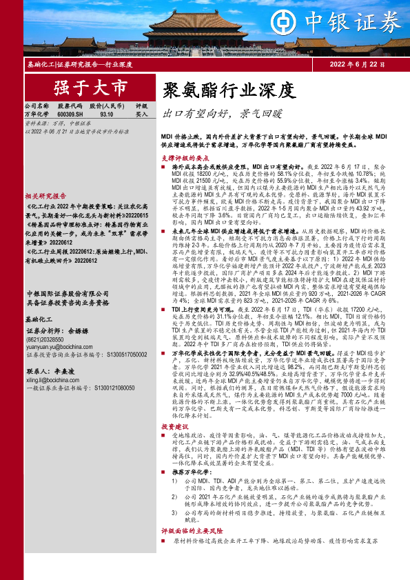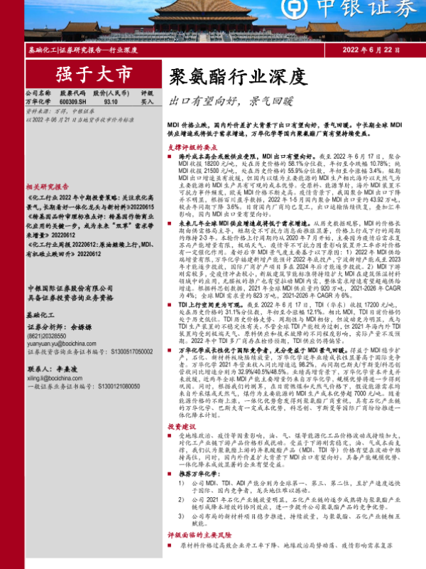【中银证券】【20220622】聚氨酯行业深度:出口有望向好,景气回暖-47页