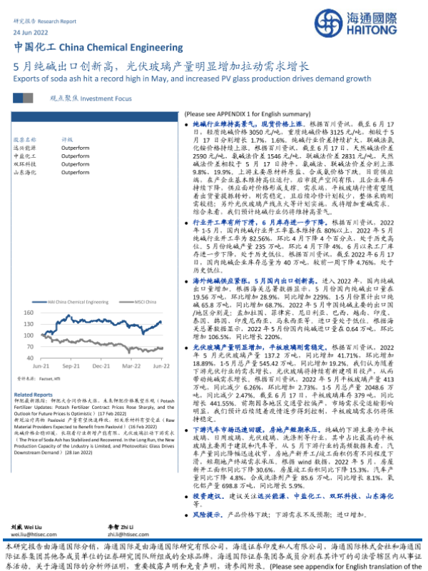 【海通国际】【20220624】中国化工:5月纯碱出口创新高,光伏玻璃产量明显增加拉动需求增长-14页