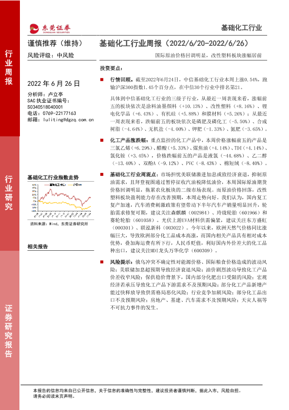 【东莞证券】【20220626】基础化工行业周报:国际原油价格回调明显,改性塑料板块涨幅居前-12页