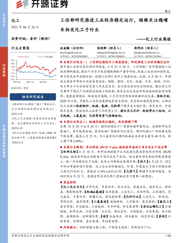 【开源证券】【20220626】20220626-开源证券-化工行业周报:工信部研究推进工业经济稳定运行,继续关注稳增长相关化工子行业-40页