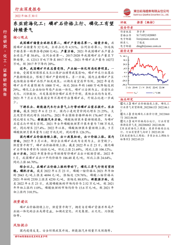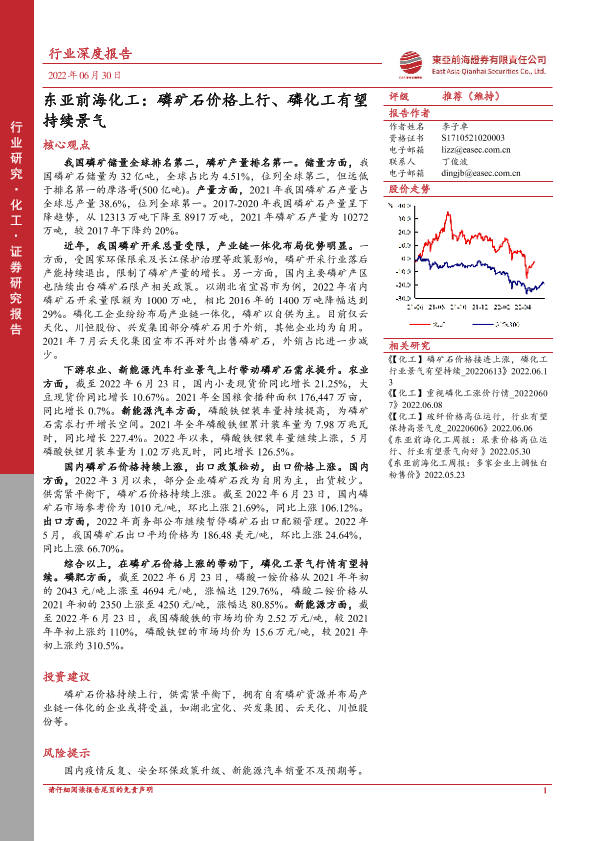 【东亚前海证券】【20220630】东亚前海化工:磷矿石价格上行、磷化工有望持续景气-40页