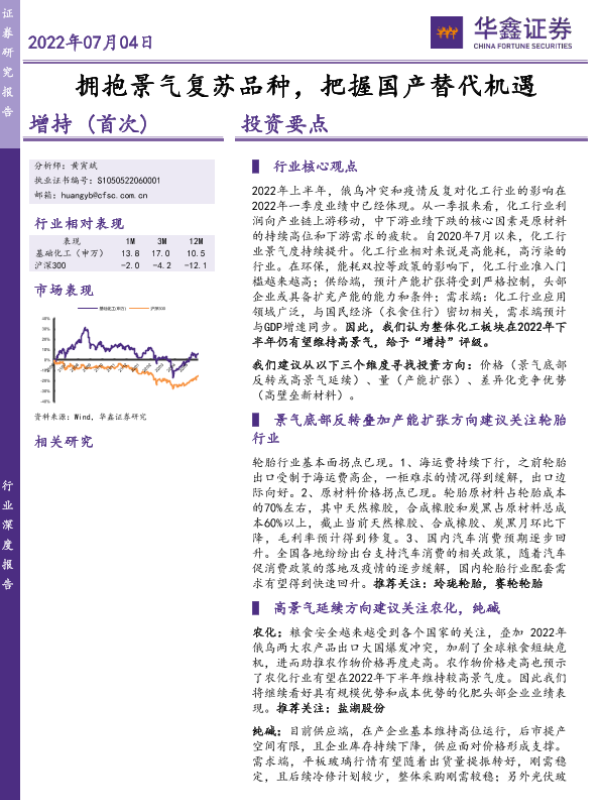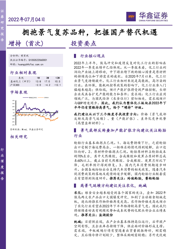化工行业 国产替代 投资策略 新材料 景气复苏