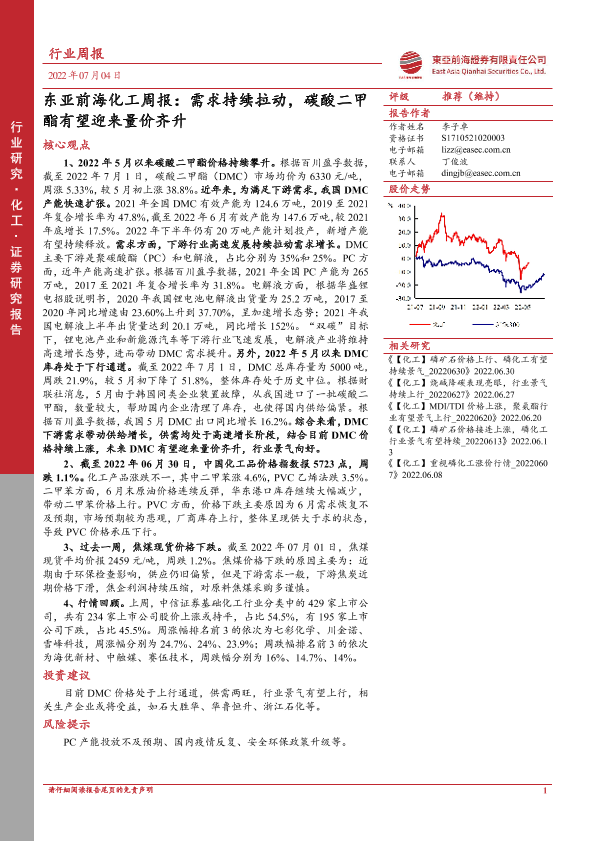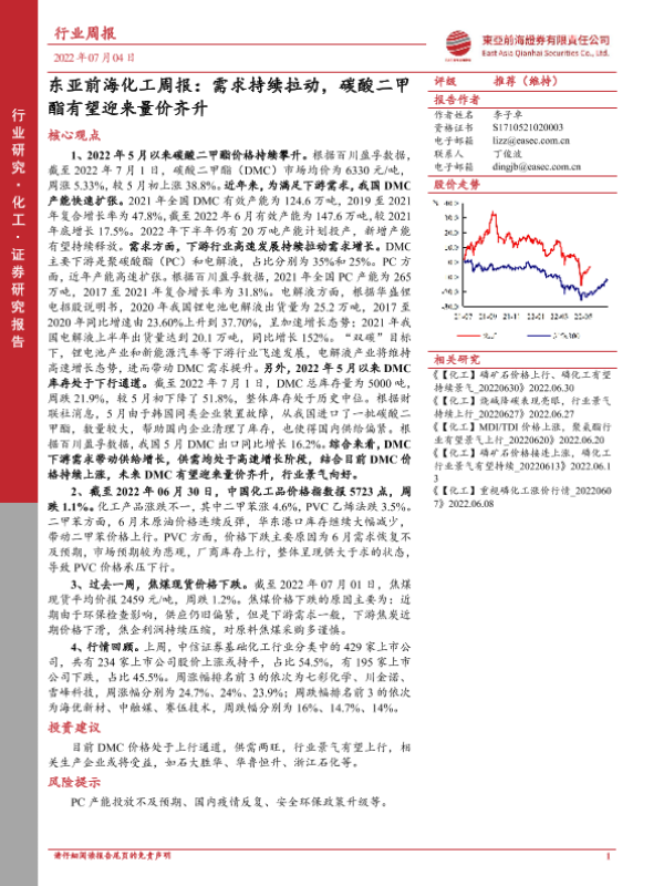 【东亚前海证券】【20220704】东亚前海化工周报:需求持续拉动,碳酸二甲酯有望迎来量价齐升-23页