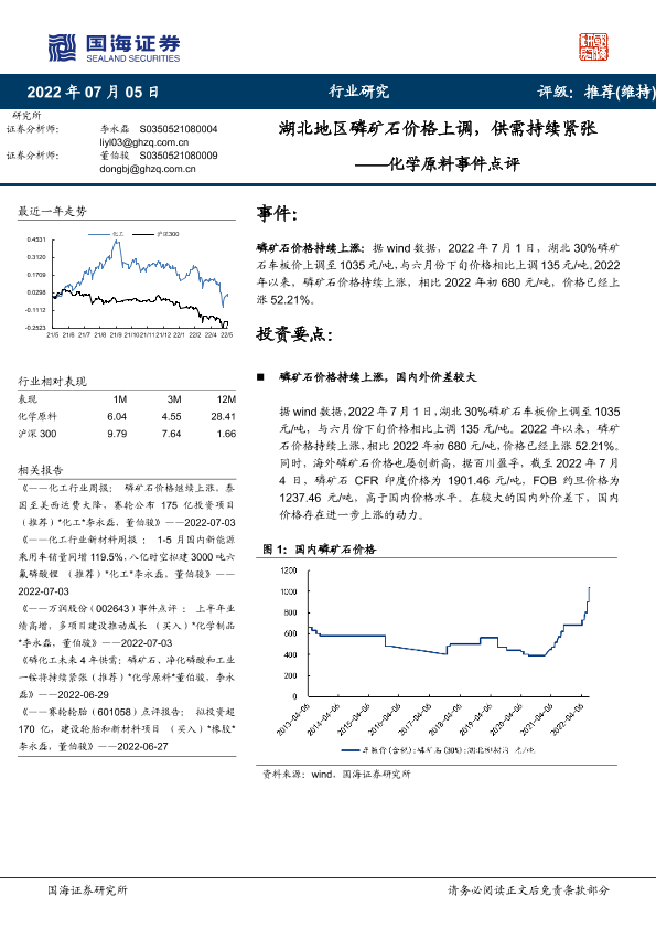 【国海证券】【20220705】化学原料事件点评:湖北地区磷矿石价格上调,供需持续紧张-6页