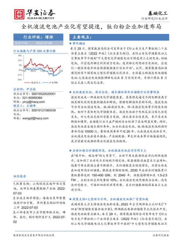 【华安证券】【20220708】全钒液流电池产业化有望提速,钛白粉企业加速布局-3页